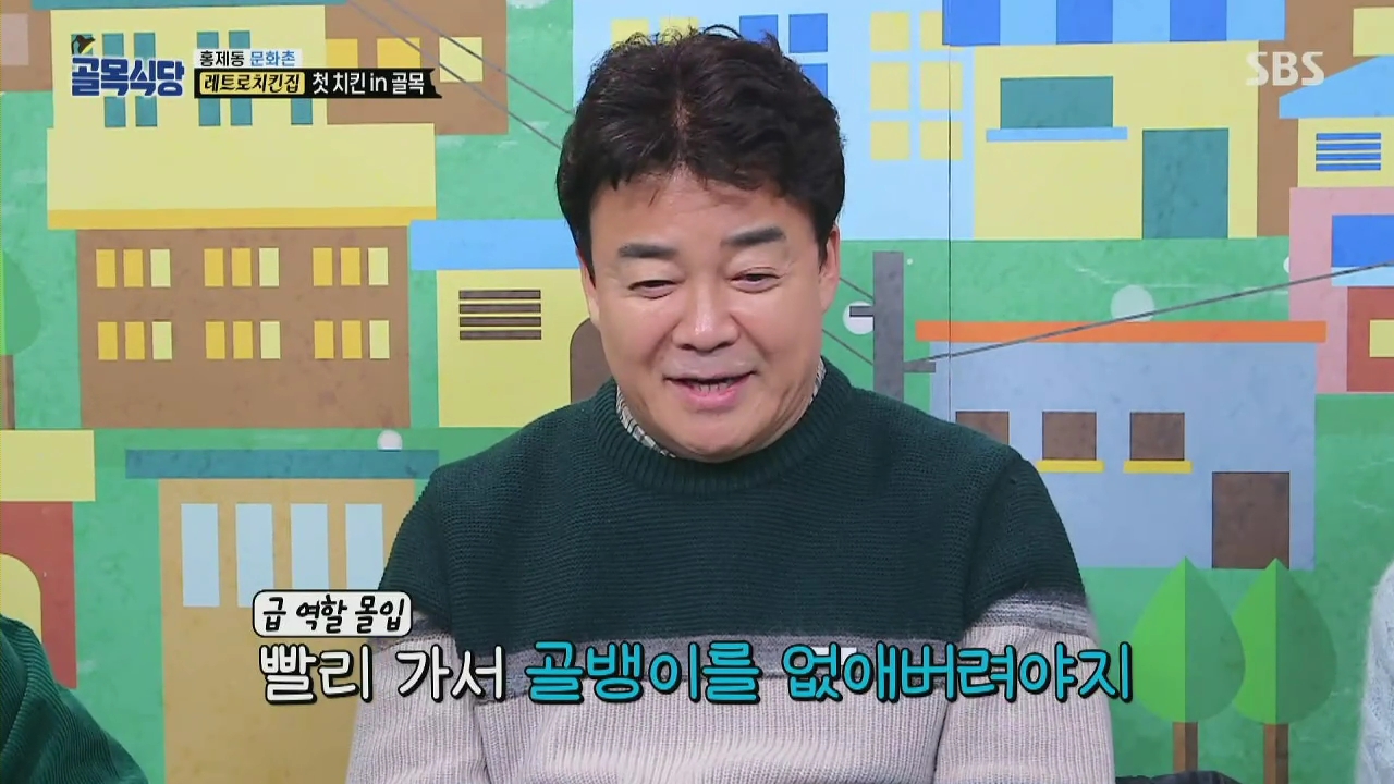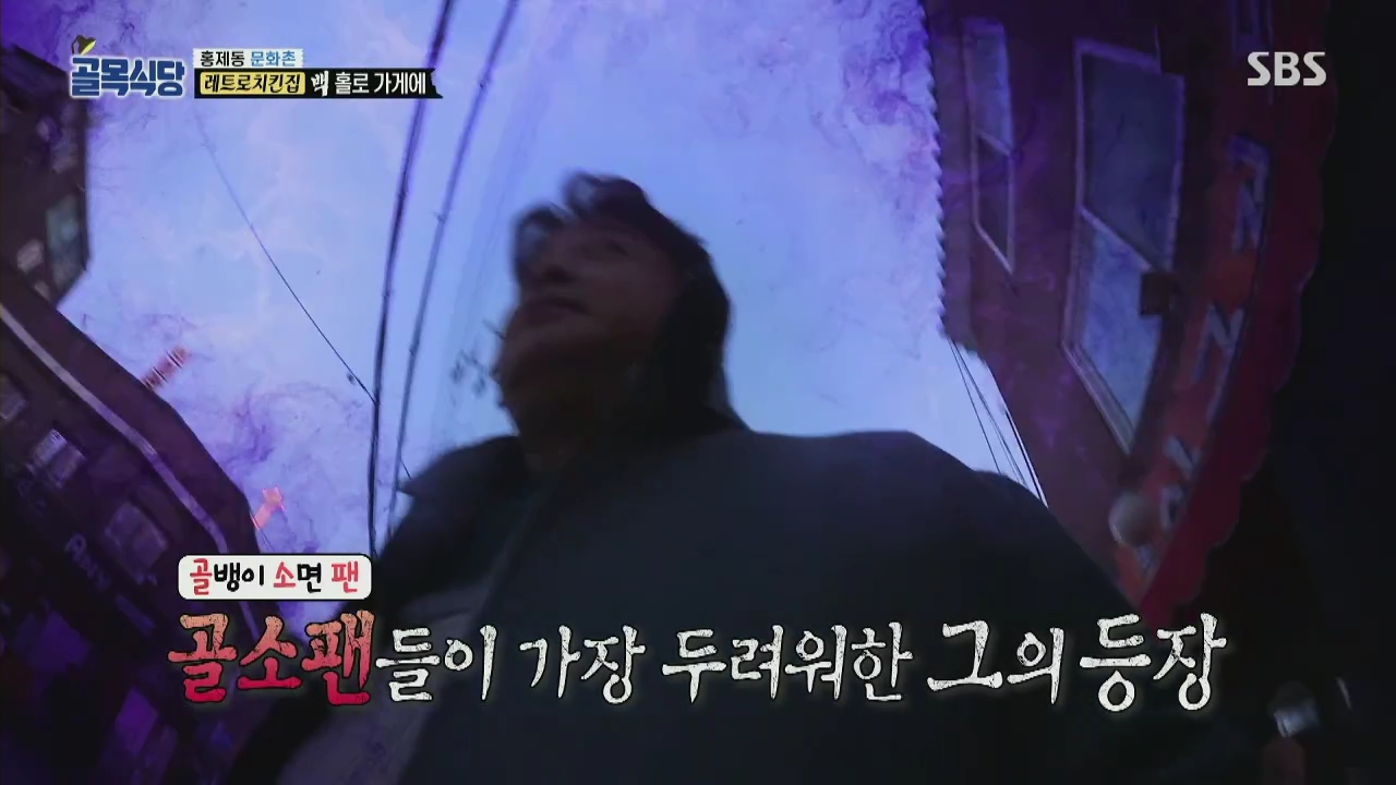 골목식당 촬영이 있다는 소식을 듣고 찾아온 단골손님. 인기 메뉴인 골뱅이 소면이 없어질까 봐 불안감을 표합니다. 솔루션 할 때면 항상 메뉴 정리부터 시작하는 백종원으로부터 골뱅이를 지키기 위한 다급함이 느껴집니다ㅋㅋ (포방터...새우 카츠 살려....ㅠㅠ)