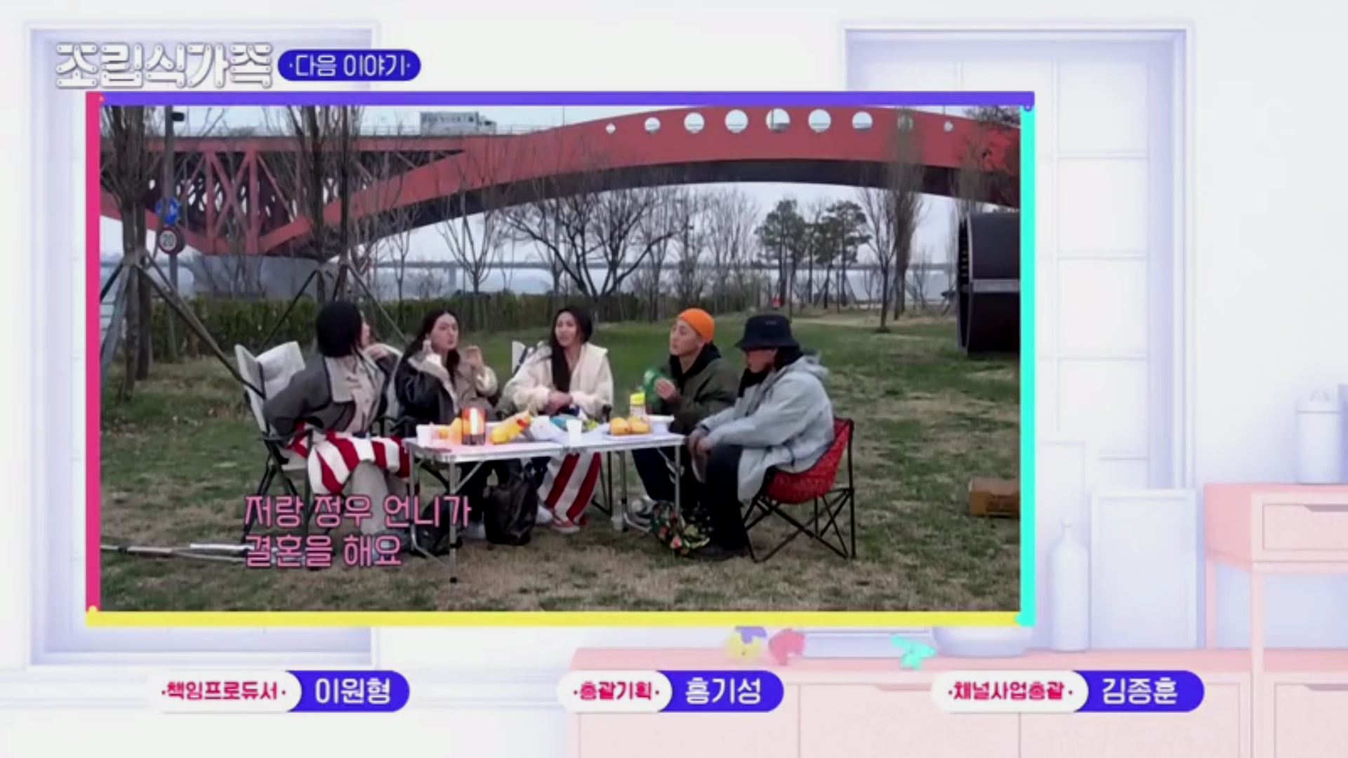 다음 주엔 모립의 지인들과 같이 수다를 떠는 모습이 나옵니다. 가운데분은 프라우드먼의 멤버이자, 모립과 같이 오엪디학원을 운영하는 카메님, 주황색 모자 쓰신 분은 모니카랑 같이 자주 작업하는 안무가 분이신 것 같고 (인스타에서 본 듯), 마지막분은 누군지 잘 모르겠습니다; 모립의 분량은 좀 줄어들 것 같아서 아쉽지만, 주변 사람들이 보는 모립에 대한 이야기는 신선할 거 같아서 기대가 됩니다. 그러고 보니 이제 조립식 가족도 얼마 남지 않았군요... 8화가 마지막인 걸로 알고 있는데, 이게 끝난다고 생각하면 눈물이ㅠㅠ 매주 삶의 낙이였는데 흑흑...