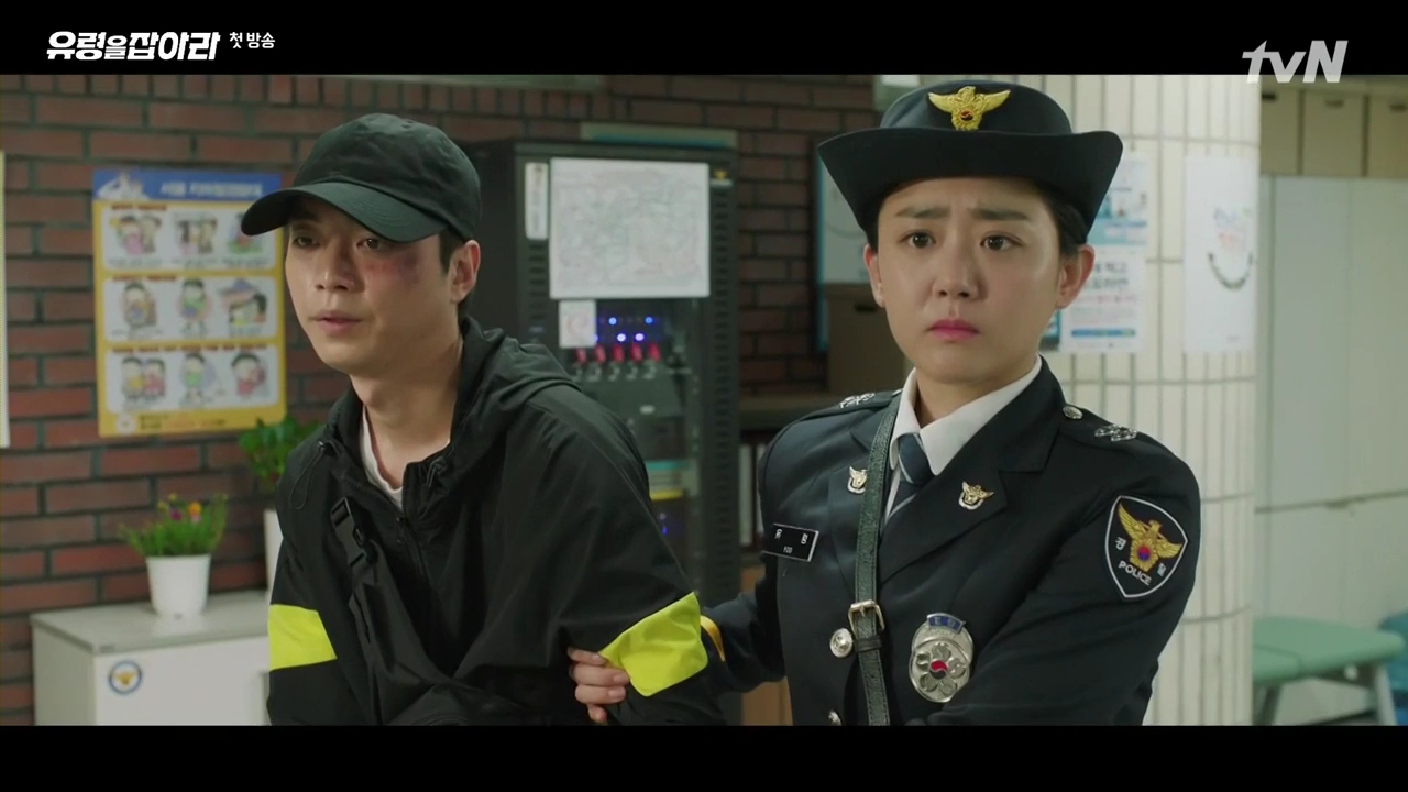 그렇게 신참 형사가 된 유령 지석과 첫 야근을 하게 됩니다. 하지만 여자 당직실이 없는 관계로 지석은 사무실에서, 유령은 당직실에서 따로 자기로 합니다.