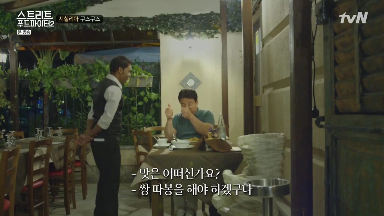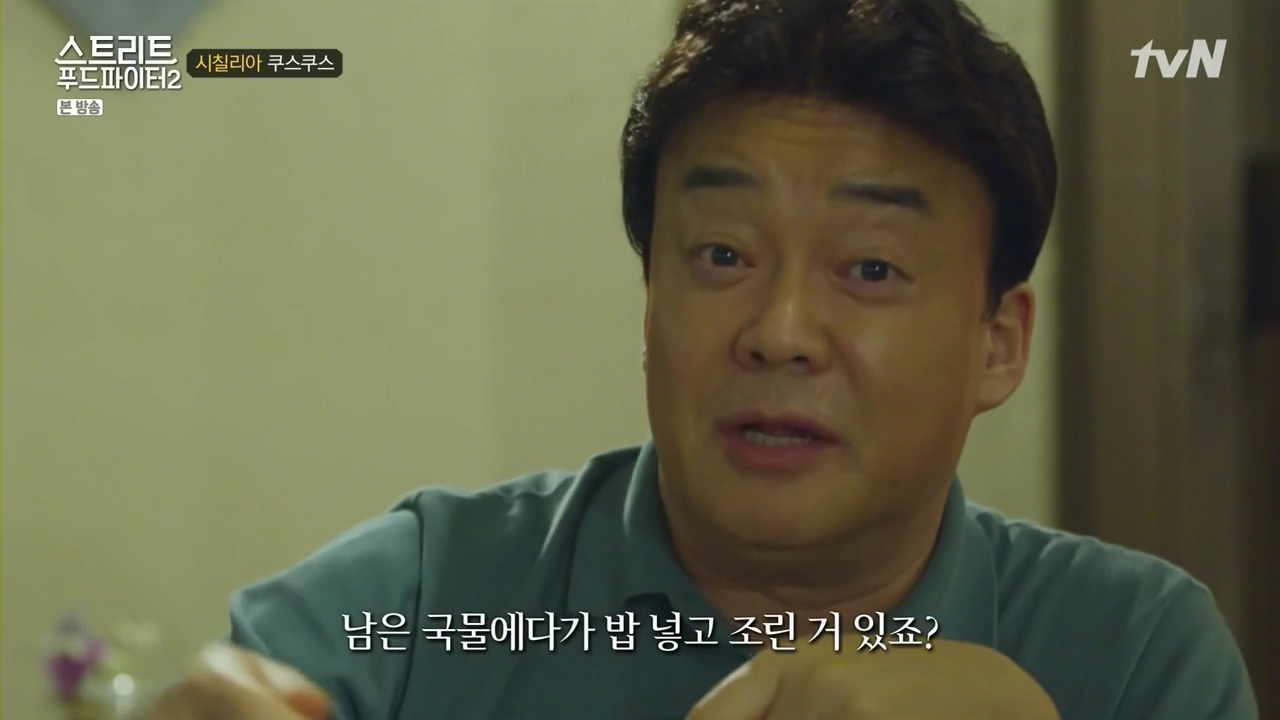 백종원이 시킨 요리는 생선 쿠스쿠스. 쿠스쿠스는 시칠리아에서 가까운 북아프리카에서 들어온 음식입니다. 백종원의 말을 빌려 '세상에서 제일 작은 파스타'라고 합니다. 밀을 굴게 빻은 뒤 (세몰리나) 물을 넣고 비벼서 알갱이를 만듭니다.