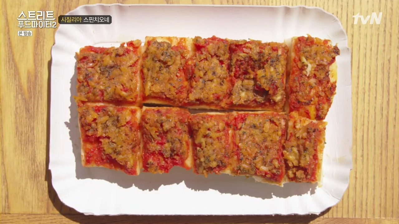 이것도 시칠리아를 대표하는 스트릿 푸드입니다. 파니는 '빵'이라는 뜻인데, 이 가게에서는 포카치아 빵을 쓰기 때문에 '포카치아 카 메우사'라고 메뉴에 쓰여있습니다. 메우사는 한국어로 소의 비장, 지라입니다. 지라는 간처럼 생겼지만 훨씬 질깁니다. 여기에선 그 지라와 허파를 같이 요리해서 빵에 넣었습니다.