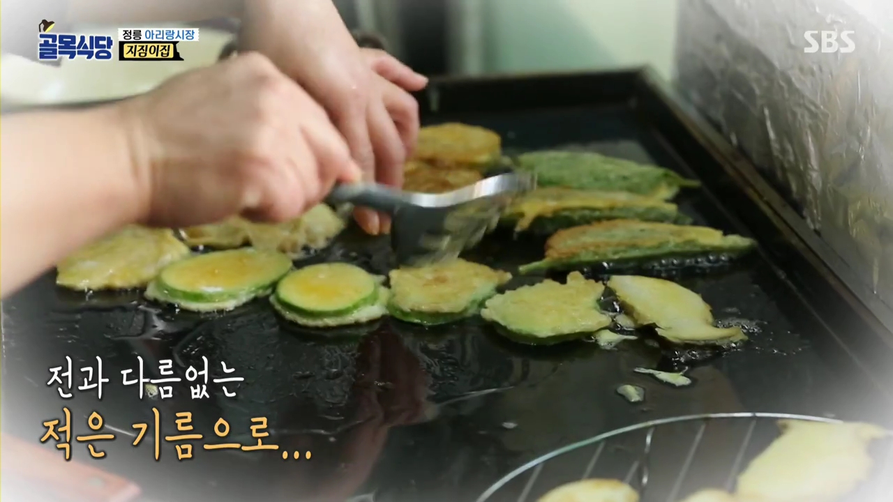 열을 식히고 돌아온 사장님은 백종원의 조언대로 조리법을 바꿔서 넉넉한 기름에 튀기듯 전을 부쳐보기로 합니다.