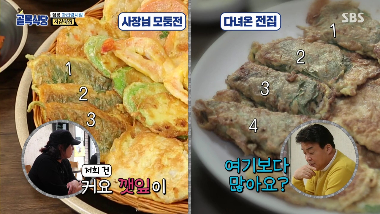 여러 가게들을 둘러보고 왔다고 말은 하지만, 조리법도 개선하지 못하고, 모둠전 구성 또한 고민한 흔적이 보이지 않습니다. 그냥 맛있게 먹방만 찍고 온 수준...