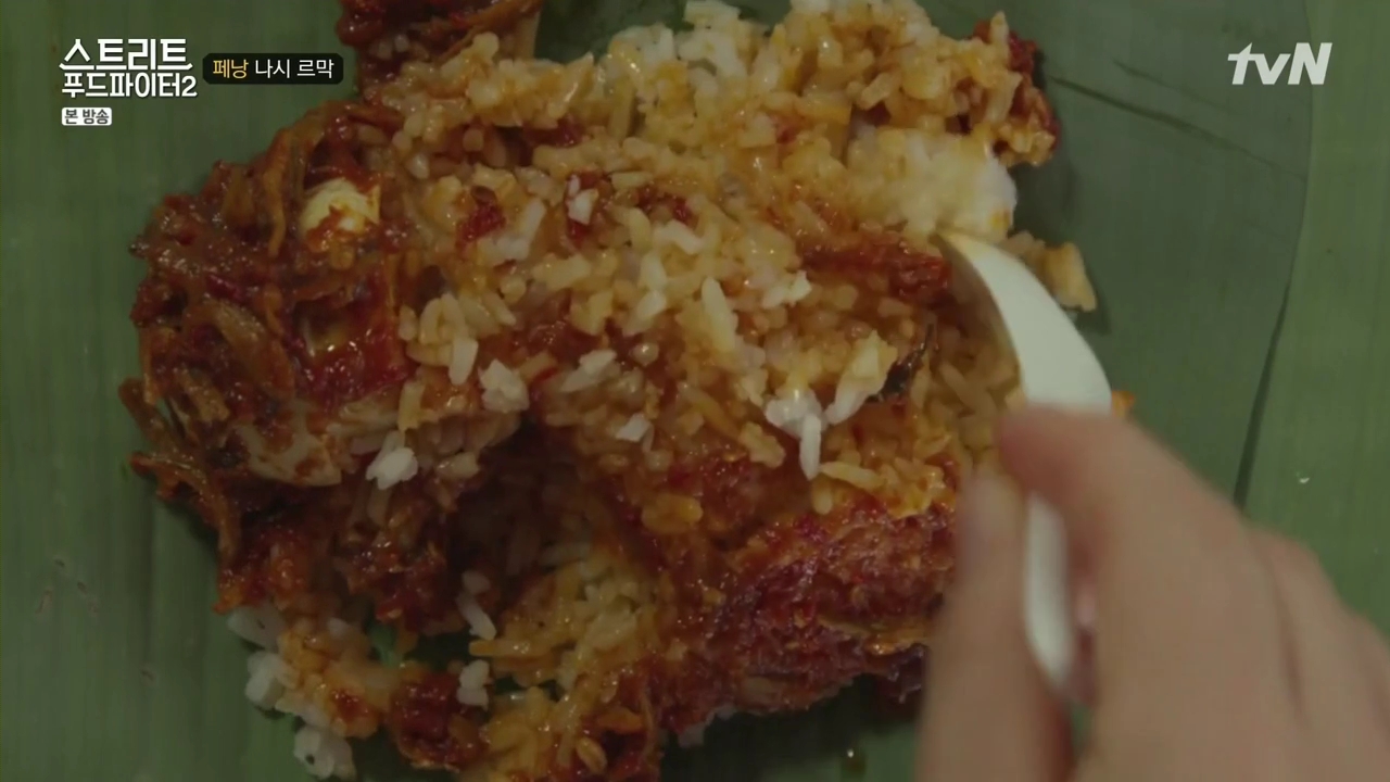 백종원이 선택한 메뉴는 빌리스 뜰로. 밥 위에 삶은 달걀, 튀긴 멸치, 그리고 매콤한 삼발 소스를 올립니다.